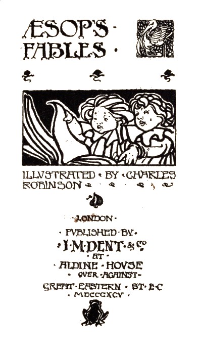 The Project Gutenberg EBook of Ęsop's Fables, by Ęsop This eBook is for the use of anyone anywhere in the United States and most other parts of the world at no cost and with almost no restrictions whatsoever. You may copy it, give it away or re-use it under the terms of the Project Gutenberg License included with this eBook or online at www.gutenberg.org. If you are not located in the United States, you'll have to check the laws of the country where you are located before using this ebook. Title: Ęsop's Fables Author: Ęsop Illustrator: Charles Robinson Release Date: September 20, 2016 [EBook #53103] Language: English Character set encoding: ISO-8859-1 *** START OF THIS PROJECT GUTENBERG EBOOK ĘSOP'S FABLES *** Produced by Madeleine Fournier. Images made available by The Internet Archive.