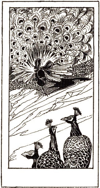 A conceited jackdaw was vain enough to imagine that he wanted nothing but the coloured plumes to make him as beautiful a bird as the Peacock. Puffed up with this wise conceit, he dressed himself with a quantity of their finest feathers, and in this borrowed garb, leaving his old companions, tried to pass for a peacock; but he no sooner attempted to stray with these splendid birds, than an affected strut betrayed the sham. The offended peacocks fell upon him with their beaks, and soon stripped him of his finery. Having turned him again into a mere jackdaw, they drove him back to his brethren.