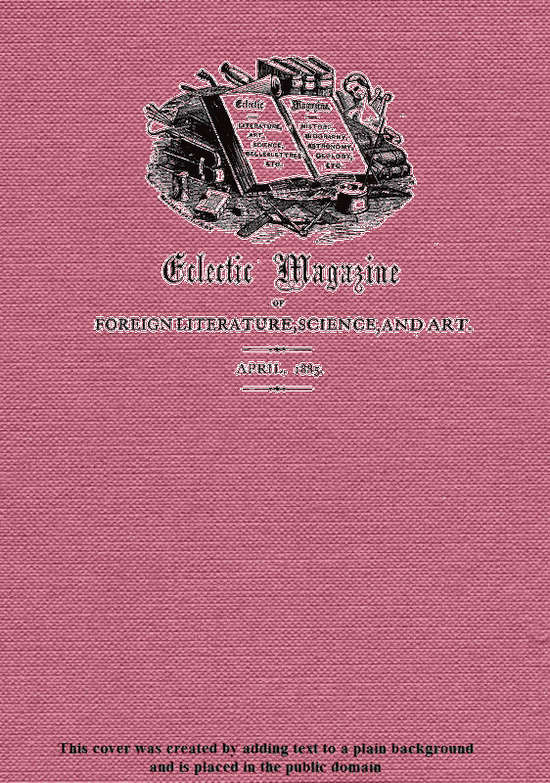The Project Gutenberg EBook of Eclectic Magazine of Foreign Literature, Science, and Art, by Various This eBook is for the use of anyone anywhere in the United States and most other parts of the world at no cost and with almost no restrictions whatsoever. You may copy it, give it away or re-use it under the terms of the Project Gutenberg License included with this eBook or online at www.gutenberg.org. If you are not located in the United States, you'll have to check the laws of the country where you are located before using this ebook. Title: Eclectic Magazine of Foreign Literature, Science, and Art, April 1885. Author: Various Release Date: October 5, 2016 [EBook #53212] Language: English Character set encoding: UTF-8 *** START OF THIS PROJECT GUTENBERG EBOOK ECLECTIC MAGAZINE--FOREIGN LITERATURE *** Produced by Juliet Sutherland, Les Galloway and the Online Distributed Proofreading Team at http://www.pgdp.net