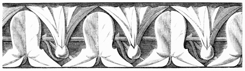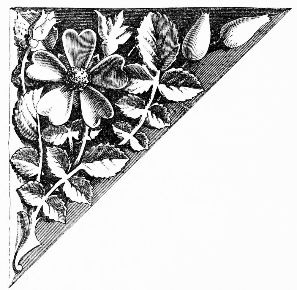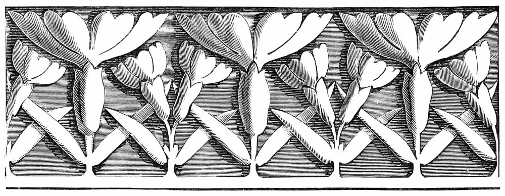 IN this series of papers it will be our desire to direct the attention of the architect, manufacturer, and designer, to some of the beautiful forms of nature, which, though easily accessible, seem to have scarcely received the consideration they deserve; to give a brief account of the habits, peculiarities, and localities of the plants as they come before us; to cite from time to time examples, either English or foreign, of their use in the ornament of the past; and generally to add such details as may directly or indirectly tend to create an interest in the plant in question. We find, on looking back at the past history and practice of ornamental art, in the midst of many marked differences of style, one principle very generally observed—the use in the ornament of any given country of the plants familiar to the people. Hence, the Egyptians exclusively used in their ornament the plants of their own land; we see the palm branch, the papyrus, and the beautiful lily of the Nile constantly recurring. We find the Greeks and Romans employing the acanthus, olive, and vine; the Japanese, the light and graceful bamboo; and in our own Gothic styles and those of the Continent—French, German, or Spanish—we meet with more or less{4} conventionalised representations in the carvings, paintings, illuminations, fabrics for dress, hangings, &c., of the familiar forms of our hedgerows, streams, and meadows, such as the wild rose, oak, maple, iris, buttercup, and many others. It is then with the desire to awaken our decorators to the fact, that beautiful as the Greek anthemion and other allied forms are, they by no means represent the limit available in ornamental art, that the following papers have been prepared, since we are persuaded that if once the inexhaustible riches of nature were sought after by our architects, and their beauties brought before the eyes of the people in their work, architecture would thus be taking one long step nearer to the sympathies and appreciation of many to whom it is now a matter of indifference. The works of a few of our leading architects owe at least some of their beauty to their recognition of this truth; and we would desire, while acknowledging the services rendered to architecture by such men as Pugin, Collings, Street, and Gilbert Scott, to add our mite to the revival going on around us.