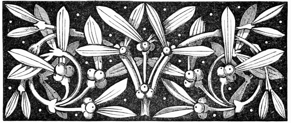 have a charm of their own no less than the higher forms, while to give but one other example from the many that present themselves, the Foraminifera—animal remains met with in chalk cliffs—though only visible with high microscopic power, have the curves of their shells as graceful, designs as varied, markings as intricate, as perhaps any other natural objects whatsoever. We therefore appreciate the quaint fancy, the studied thought of the designer who in some old glass that we have noticed at Ockham Church, in Surrey, while making some of his quarry designs of columbine, rose, and other lovely forms, chose for one of them a little fungus surrounded by cup moss, and springing from the turf; frail creatures of a day, meet emblems—like the withering grass, the{viii} fading flower—of the short estate of man, the transience of all his glory.