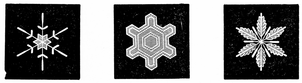 and the more familiar forms of earth, deals with those delicate forms of the air, the flakes of falling snow, and points out the immense variety of graceful forms afforded by their crystals.