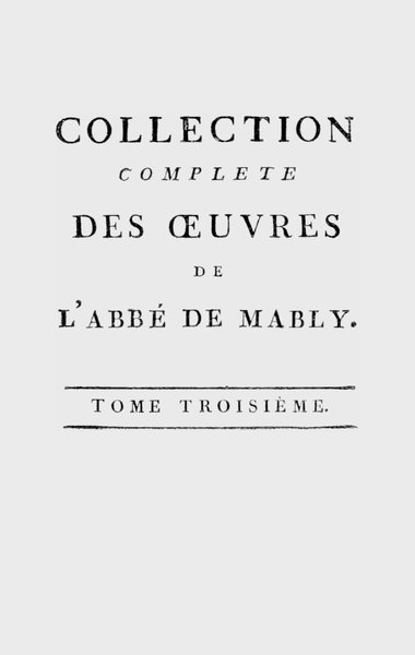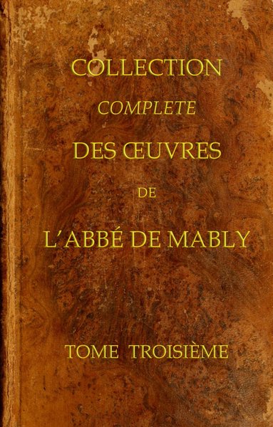 The Project Gutenberg EBook of Collection complète des oeuvres de l'Abbé de Mably, Volume 3 (of 15), by Abbé de Mably This eBook is for the use of anyone anywhere in the United States and most other parts of the world at no cost and with almost no restrictions whatsoever. You may copy it, give it away or re-use it under the terms of the Project Gutenberg License included with this eBook or online at www.gutenberg.org. If you are not located in the United States, you'll have to check the laws of the country where you are located before using this ebook. Title: Collection complète des oeuvres de l'Abbé de Mably, Volume 3 (of 15) Author: Abbé de Mably Release Date: November 30, 2016 [EBook #53640] Language: French Character set encoding: UTF-8 *** START OF THIS PROJECT GUTENBERG EBOOK OEUVRES DE L'ABBE DE MABLY, VOL 3 *** Produced by Chuck Greif, Hans Pieterse and the Online Distributed Proofreading Team at http://www.pgdp.net (This file was produced from images generously made available by The Internet Archive)