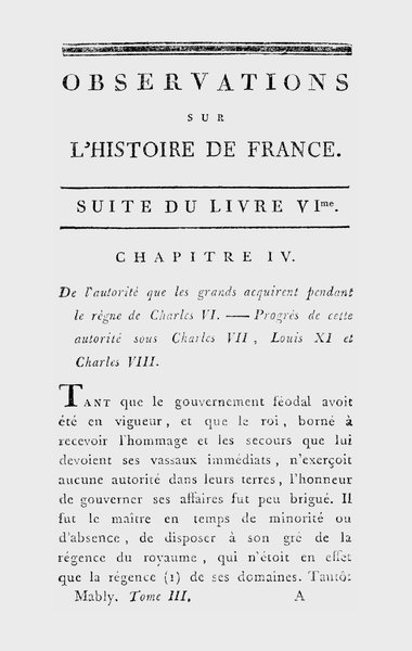 Il suffit d’avoir quelque idée de la manière étrange dont les grands ont abusé de leur pouvoir dans tous les pays, pour juger des malheurs que devoit produire en France leur association au gouvernement. Par-tout ils ont brisé les foibles obstacles qui s’opposoient à leur volonté; par-tout ils ont fait taire les lois, et cru qu’eux seuls formoient la société. Il est vraisemblable que la troisième race de nos rois auroit éprouvé les mêmes disgraces que les deux premières, si les grands avoient été les seuls ministres et les seuls dépositaires de l’autorité royale sous les successeurs de Charles VI; à force d’en abuser, ils n’auroient bientôt pu en tirer aucun avantage. Las de servir ou de gouverner un maître inutile, ils devoient alors songer à se faire une puissance propre et personnelle, et on auroit vu renaître 55 le gouvernement féodal, dont le souvenir leur étoit toujours cher.