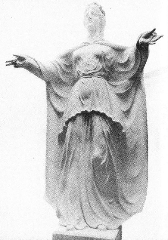The figure of “Liberty” atop the Yorktown Victory Monument. Sculptured by Oskar J. W. Hansen.