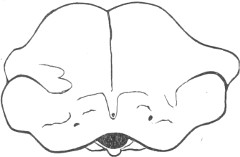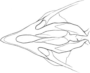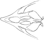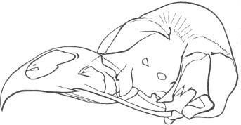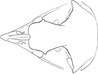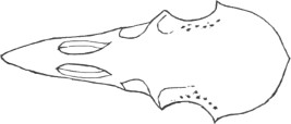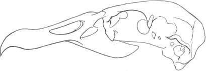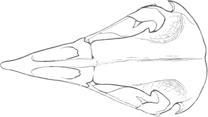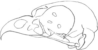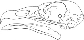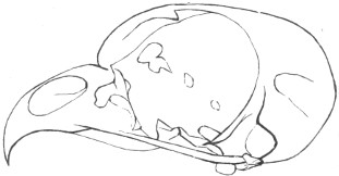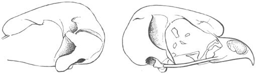 They have never yet been satisfactorily classified, and all the arrangements which have been either proposed or adopted are refuted by the facts developed upon a close study into the true relationship of the many genera. The divisions of “Night Owls,” “Day Owls,” “Horned Owls,” etc., are purely artificial. This family is much more homogeneous than that of the Falconidæ, since none of the many genera which I have examined seem to depart in their structure from the model of a single subfamily, though a few of them are somewhat aberrant as regards peculiarities in the detail of external form, or, less often, to a slight extent, in their osteological characters, though I have examined critically only the American and European species; and there may be some Asiatic, African, or Australian genera which depart so far from the normal standard of structure as to necessitate a modification of this view. In the structure of the sternum there is scarcely the least noticeable deviation in any genus7 from the typical form. The appreciable differences appear to be only of generic value, such as a different proportionate length of the coracoid bones and the sternum, and width of the sternum in proportion to its length, or the height of its keel. The crania present a greater range of variation, and, if closely studied, may afford a clew to a more natural arrangement than the one which is here presented. The chief differences in the skulls of different genera consist in the degree of pneumaticity of the bones, in the form of the auricular bones, the comparative length and breadth of the palatines, and very great contrasts in the contour. As a rule, we find that those skulls which have the greatest pneumaticity (e.g. Strix and Otus) are most depressed anteriorly, have the orbital septum thicker, the palatines longer and narrower, and a deeper longitudinal median valley on the superior surface, and vice versa.
