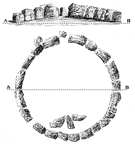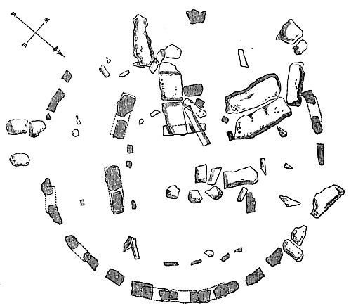 In many circles some or all of the stones have no decided difference in the measures of width and thickness; but in all cases, when I have found a difference, the long sides are in the line of the curve.