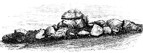 Lower down the strath on the same side of the brook were many circles which were destroyed in "improving" the land some years ago. These are stated to have been 20 or 30 yards across, of stones 2 feet to 4 feet high. No remains are known to have been found in them; but no observations or measures were made. It is probable that these circles were sepulchral—the absence of stones in the centres notwithstanding. Nearer the road and shore are other remains of broughs, cairns, cists, &c.