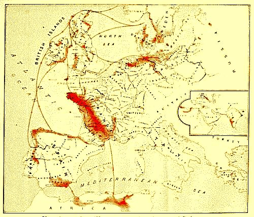 Map, designed to illustrate the distribution of Dolmens, and probable lines of the migrations of the Dolmen builders.