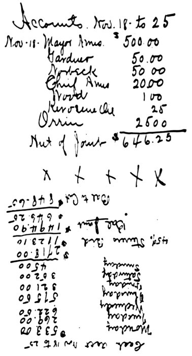 From the Assembly, bribery spread into other departments. Men empowered to issue peddlers’ licenses and permits to citizens who wished to erect awnings or use a portion of the sidewalk for storage purposes charged an amount in excess of the prices stipulated by law, and pocketed the difference. The city’s money was loaned at interest, and the interest was converted into private bank accounts. City carriages were used by the wives and children of city officials. Supplies for public 35institutions found their way to private tables; one itemized account of food furnished the poorhouse included California jellies, imported cheeses, and French wines! A member of the Assembly caused the incorporation of a grocery company, with his sons and daughters the ostensible stockholders, and succeeded in having his bid for city supplies accepted although the figures were in excess of his competitors’. In return for the favor thus shown, he indorsed a measure to award the contract for city printing to another member, and these two voted aye on a bill granting to a third the exclusive right to furnish city dispensaries with drugs.