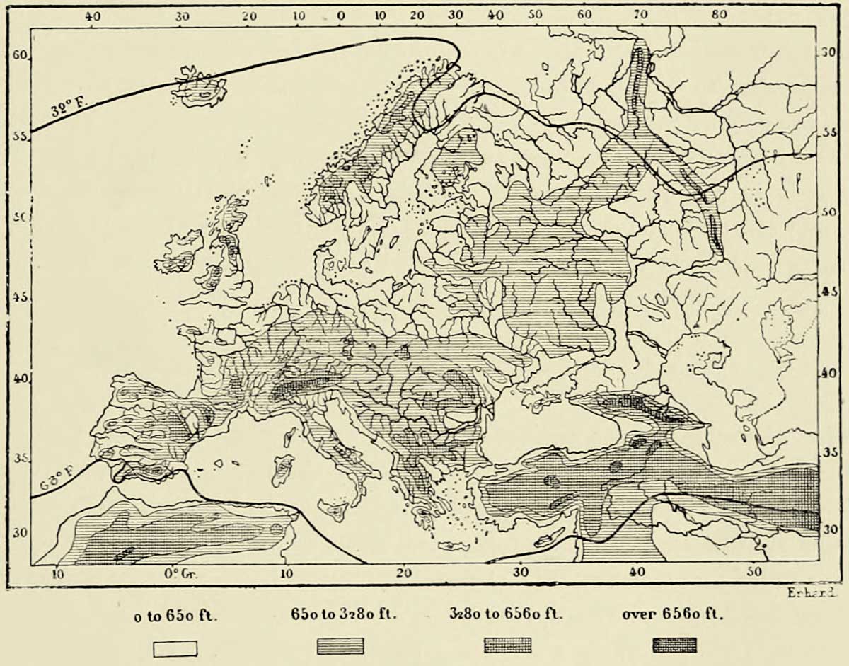If in our description of the Earth we accord the first place to civilised Europe, it is not because of a prejudice similar to that of the Chinese. No ! this place belongs to Europe as a matter of right. Europe as yet is the only continent the whole of whose surface has been scientifically explored. It possesses a map approximately correct, and its material resources are almost fully known to us. Its population is not as dense as that of India or of China, but it nevertheless contains about one-fourth of the total population of the globe; and its inhabitants, whatever their failings and vices, or their state of barbarism in some respects, still impel the rest of mankind as regards material and mental progress. Europe, for twenty-five centuries, has been the focus whence radiated Arts, Sciences, and Thought. Nor have those hardy colonists who carried their European languages and customs beyond the sea succeeded hitherto in giving to the New World an importance equal to that of “little” Europe, in spite of the virgin soil and vast area which gave them scope for unlimited expansion.