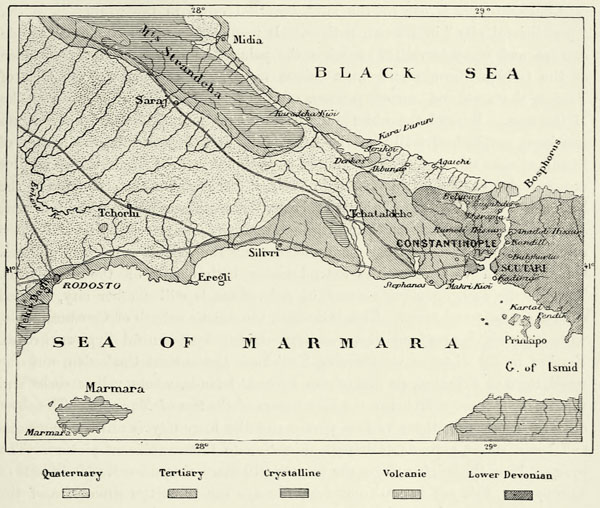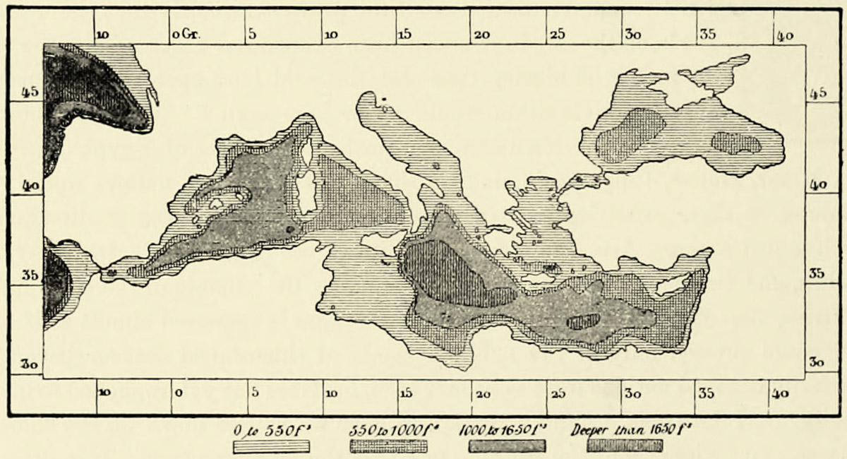 There can be no doubt that vast changes have taken place in the configuration {9} of Europe, not only during more ancient geological periods, but also within comparatively recent times. We have already seen that a vast arm of the sea formerly separated Europe from Asia; it is equally certain that there was a time when it was joined to Anatolia by an isthmus, which has since been converted into the Bosphorus of Constantinople; Spain was joined to Africa until the waters of the Atlantic invaded the Mediterranean; Sicily was probably connected with Mauritania; and the British Islands once formed a portion of the mainland. The erosion of the sea, as well as upheavals and subsidences of land, has effected, and still effect, changes in the contours of our coasts. Numerous soundings in the seas washing Western Europe have revealed the existence of a submarine plateau, which, from a geological point of view, must be looked upon as forming an integral portion of our continent. Bounded by abyssal depths of thousands of fathoms, and submerged one hundred fathoms at most below the waters of the ocean, this pedestal of France and the British Islands must be looked upon as the foundation of an ancient continent, destroyed by the incessant action of the waves. If the shallow portions of the ocean, as well as those of the Mediterranean Sea, were to be added to Europe, its area would be increased to the extent of one-fourth, but it would lose, at the same time, that wealth in peninsulas which has secured to Europe its historical superiority over the other continents.
