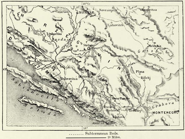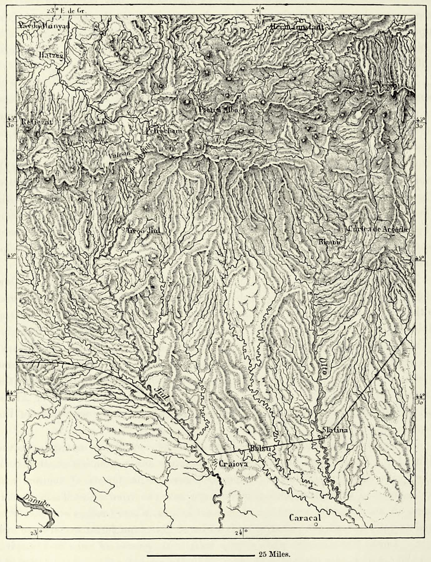 In thus spreading out, the Alps lose their character and aspect. We no longer meet with grand mountain masses, glaciers, and snow-fields. Towards the north they gradually sink down into the valley of the Danube; towards the south they branch out into secondary chains, resting upon the arched plateau of Turkey. But, in spite of the vast contrasts offered by the true Alps and the mountains of Montenegro, the Hæmus, the Rhodope, and the Pindus, all these mountain chains nevertheless belong to the same orographical system. The whole of the Balkan peninsula must be looked upon as a natural dependency of the Alps; and the same applies to Italy, for the chain of the Apennines is nothing but a continuation of the Maritime Alps, and we hardly know where to draw the line of separation between them. The Carpathians, too, must be included among the {11} mountain chains forming part of the system of the Alps. They have been gradually separated from them through the continuous action of water, but there can be no doubt that, in former times, the semicircle of mountains known as the Little Carpathians, the Beskids, the Tatra, the Great Carpathians, and the Transylvanian Alps was joined, on the one hand, to the Austrian Alps, and on the other to spurs descending from the Balkan. The Danube has forced its way through these mountain ramparts, but the passages, or “gates,” are narrow; they are strewn with rocks, and commanded by what remains of the ancient partition ranges.