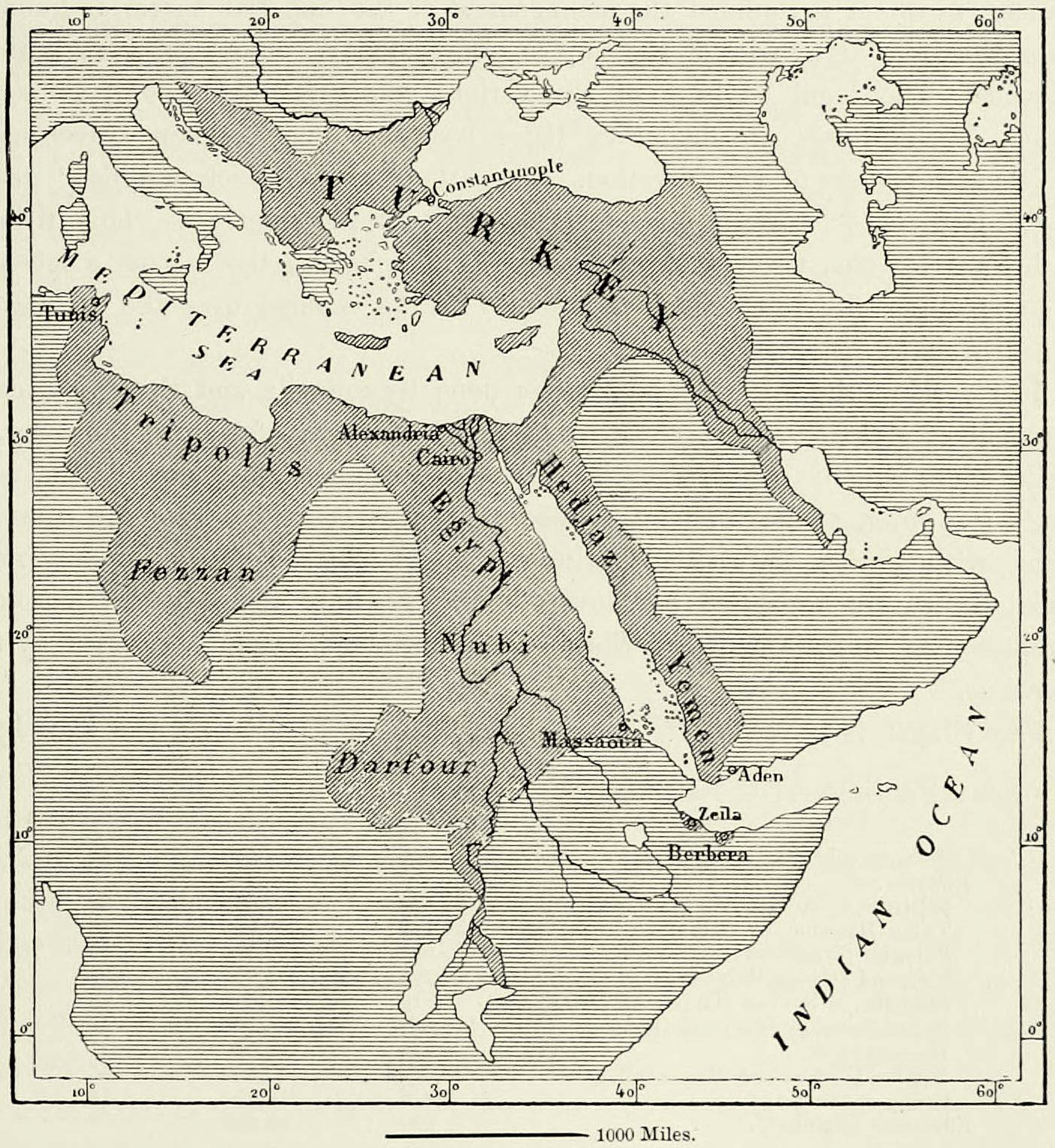 The dwellers on the eastern shores of the Mediterranean Sea must have learnt, in the course of their first warlike and commercial expeditions, to distinguish between the great continents; for within the nucleus of the ancient world Africa is attached to Asia by a narrow band of arid sand, and Europe separated from Asia Minor by seas and channels difficult to navigate on account of dangerous currents. The division of the known world into three distinct parts could not fail to impress itself upon the minds of those infant nations; and when the Greeks had attained a state of maturity, and historical records took the place of myths and oral traditions, the name of Europe had probably been transmitted through a long series of generations. Herodotus naïvely admits that no mortal could ever hope to find out the true meaning of this name, bequeathed to us by our forefathers; but this has not deterred our modern men of learning from attempting to explain it. Some amongst them consider that it was applied at first to Thrace with its “large plains,” and subsequently extended to the whole of Europe; others derive it from one of the surnames of Zeus with the “large eyes,” the ancient god of the Sun, specially charged with the protection of the continent. Some etymologists believe that Europe was designated thus by the Phœnicians, as being the country of “white men.” We consider it, however, to be far more probable that its name originally meant simply “the West,” as contrasted with Asia, “the East,” or “country of the rising sun.” It is thus that Italy first, and then Spain, bore the name of Hesperia; that Western Africa received the name of El Maghreb from the Mohammedans, and the plains beyond the Mississippi became known in our own times as the “Far West.”