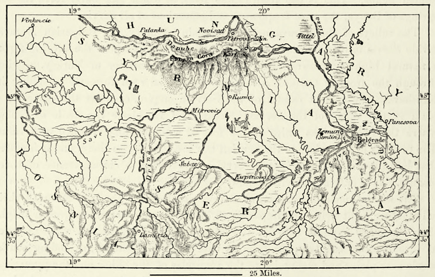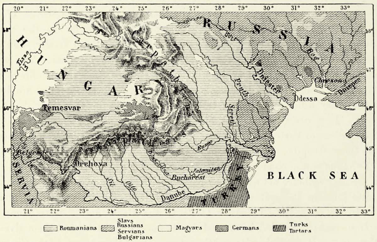 The configuration of the Alps, and of the labyrinthine mountain ranges branching off from them towards the east, could not fail to exercise a most powerful influence upon the history of Europe and of the entire world. The only high-roads known to barbarians are those traced out by nature herself, and they were consequently able to penetrate into Europe only by sea, or through the vast plains of the north. Having penetrated to the westward of the Black Sea, their progress was first stopped by the lakes and difficult swamps of the Danubian valley; and, when they had surmounted these obstacles, they found themselves face to face with a barrier of high mountains, whose intricate wooded valleys and declivities led up to the inaccessible regions of eternal snow. The Alps, the Balkan, and all the other advanced chains of the Alpine system constituted an advanced defensive barrier for Western Europe, and the conquering nomad tribes who threw themselves against it did so at the risk of destruction. Accustomed to the boundless horizon of the steppes, they did not venture to climb these steep hills—they turned to the northward, where the vast plains of Germania enabled successive swarms of immigrants to spread over the country with greater ease. And as to the invaders, whom blind rage of conquest impelled to engage in the defiles of these mountains, they found themselves caught as in a trap; and this accounts for the variety of nations, and of fragments of nations, whose presence has converted the countries of the Danube into a sort of ethnological chaos. And as the débris carried along by the current is deposited in the eddy of a river, so were these fragments of nearly every nation of the East accumulated in motley disorder in this corner of the Continent.
