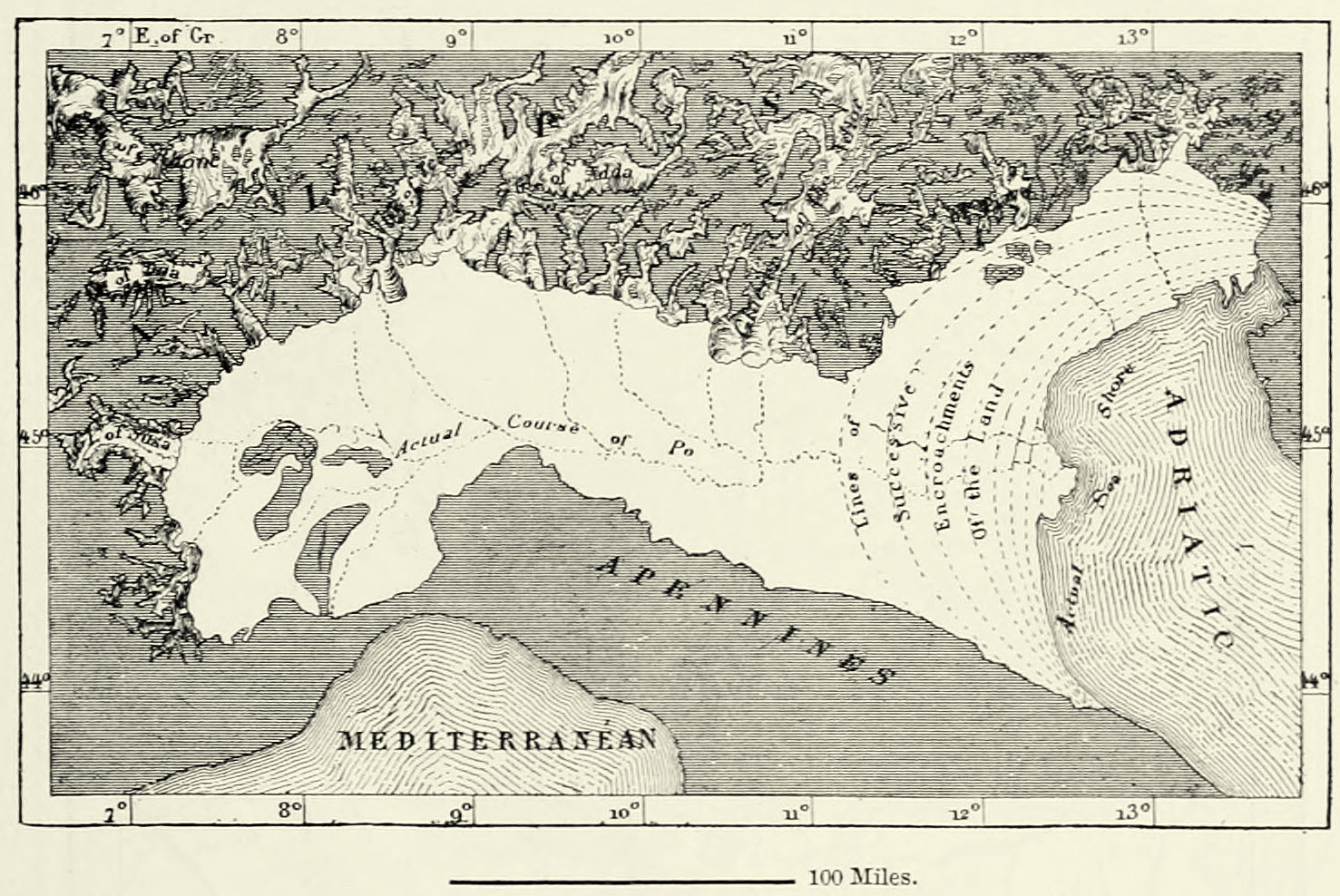 The valleys which radiate in all directions from the great central masses of the Alps are admirably adapted for imparting to almost the whole of Europe a remarkable unity, whilst they offer, at the same time, an extreme variety of aspects and of physical conditions. The Po, the Rhone, the Rhine, and the Danube traverse countries having the most diverse climates, and yet they have their sources in the same mountain region, and the fertilising alluvium which they deposit in their valleys results from the disintegration of the same rocks. Minor valleys cut up the slopes of the Alps and of their dependent chains, and carry towards the sea the waters of the mountains and the triturated fragments of their rocks. Running waters are visible, wherever we cast our eyes. There are neither deserts, nor sterile plateaux, nor inland lakes and river basins such as we meet with in Africa and Asia. The rivers of Europe are not flooded as are those of certain portions of South America, which deluge half the country with water. On the contrary, in the scheme of her rivers Europe exhibits a certain degree of moderation which has favoured the work of the settler, and facilitated the rise of a local civilisation in each river basin. Moreover, although most rivers are sufficiently large to have retarded migration, they are not sufficiently so to have arrested it for any length of time. Even when roads and bridges did not exist, barbarian immigrants easily made their way from the shores of the Black Sea to those of the Atlantic.