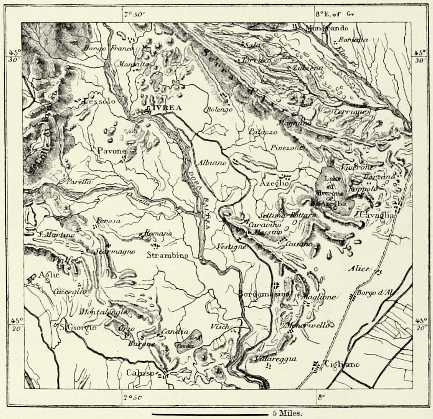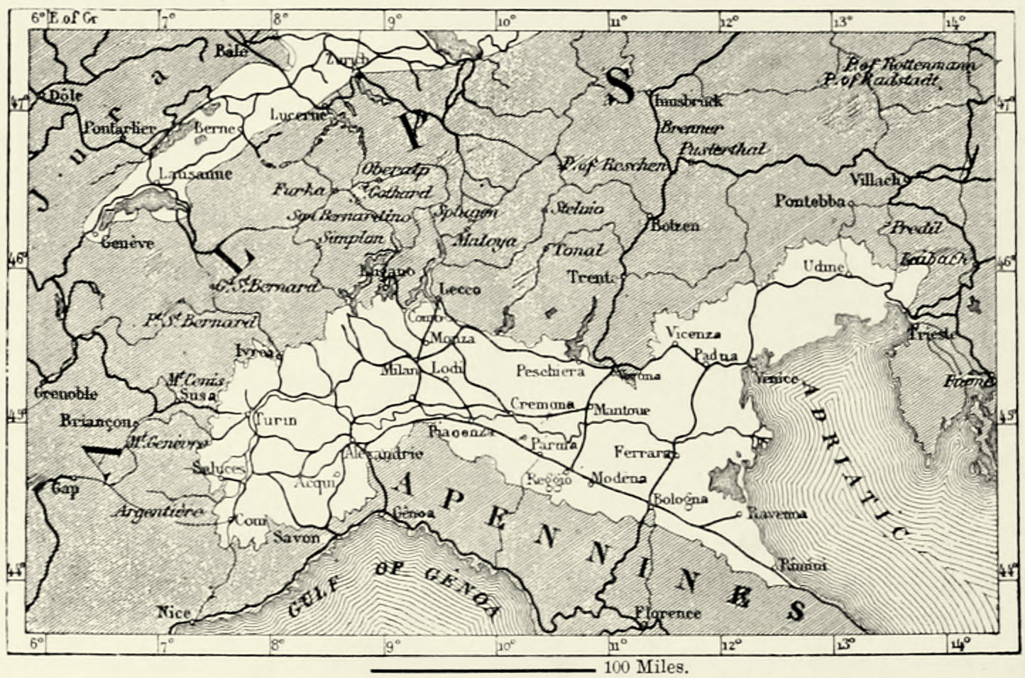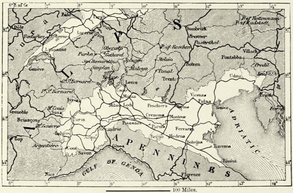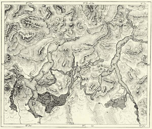 The wide range of the Alps and of their advanced chains thus separated two distinct worlds, in which historical development went on at a different rate. At the same time, the separation between the two slopes of the Alpine system was by no means complete. Nowhere in the Alps do we meet with cold and uninhabited plateaux, as in the Andes and in Tibet, whose enormous extent forms almost insurmountable barriers. The Alpine masses are cut up everywhere into mountains and valleys, and the climate of the latter is sufficiently mild to enable man to exist in them. The mountaineers, who easily maintained their independence, owing to the protection extended to them by nature, first served as intermediaries between the peoples inhabiting the opposite lowlands. It was they who effected the rare exchanges of produce which took place between the North and South, and who opened the first commercial high-roads between the summits of the mountains. The direction of the valleys and the deeply cut mountain passes even then indicated the grand routes by which the Alps would be crossed, at a future period, for the purposes of commerce or of war. That portion of the Alps which lies between the mountain masses of Savoy and of the Mediterranean would naturally cease first to form an obstacle to military expeditions. The Alps there are of great height, it is true, but they are narrower than anywhere else; besides which, the climate on the two opposite slopes is similar, and assimilates the mode of life and the customs of the people dwelling there. Far more formidable, as a natural barrier, are the Alps to the north-east of Mont Blanc, for they constitute a climatic boundary.