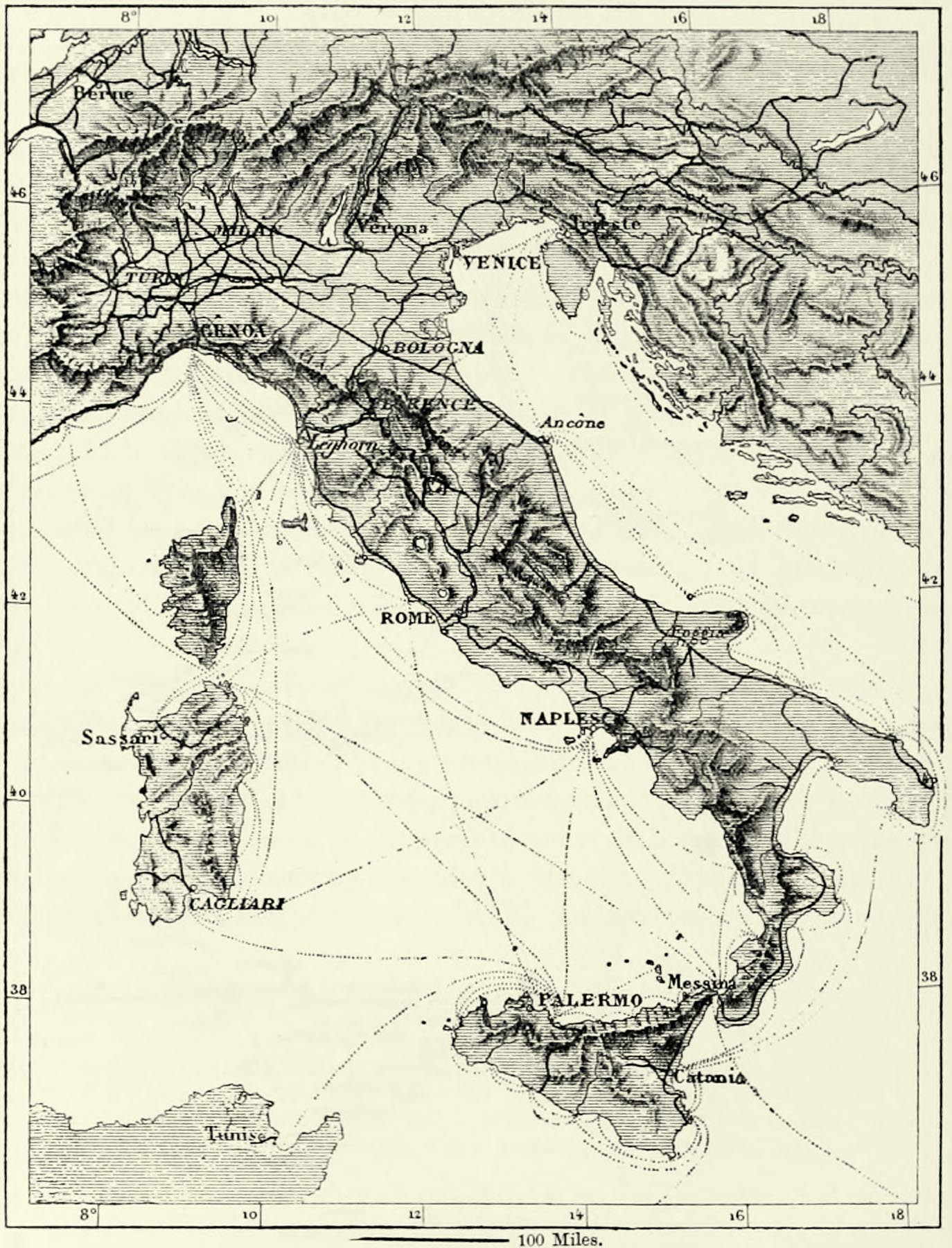 But, whatever may happen in the future, the great changes which have taken place in the relative importance of the peninsulas and islands of Europe in the short span of twenty centuries, sufficiently prove that geographical features exercise a varying influence at different epochs. That which at one time was looked upon as a great natural advantage may become, in course of time, a serious disadvantage. Thus the numerous inlets and gulfs enclosed by mountain chains, which favoured the rise of the cities of Greece, and gave to Athens the dominion of the Mediterranean, now constitute as many obstacles to their connection with the existing system of European communications. That which in former times constituted the strength of the country has become its weakness. In primitive times, before man ventured upon the seas, these bays and gulfs formed insurmountable obstacles to the migration of nations; at a later date, when the art of navigation had been acquired, they became commercial high-roads, and were favourable to the development of civilisation; and at the present time they are again obstacles in the way of our road-builders and railway engineers. {16}
