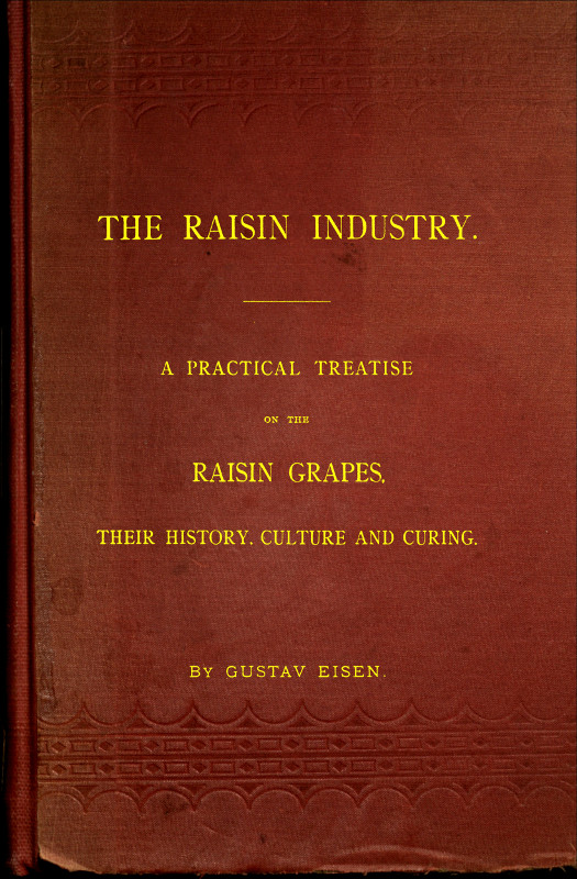 f late years the raisin industry has been prominently before the horticulturists of California. Many people now make their living and acquire wealth by the cultivation of the raisin grapes, and many are now studying the methods of cultivation, pruning, curing and packing while waiting for their vines to bear. The literature of the raisin industry is a very scant one, and, with the exception of a few notices in works of travel, or in treatises on general fruit culture, we find not a single book in which this important and interesting industry is made the special subject of study and discussion. A book on the raisin industry may, therefore, be considered timely. I have endeavored to so write it that it would contain something of interest to all those connected with the growing and curing of the raisin grapes, to those who have already succeeded in building up fame and fortune, as well as to those who have just begun the cultivation of the vine, and who have as yet only realized the pleasures, but not the profits, of the industry. The historical part of the book will principally interest the former; for the latter the practical part on cultivation, pruning, curing and packing is intended.
