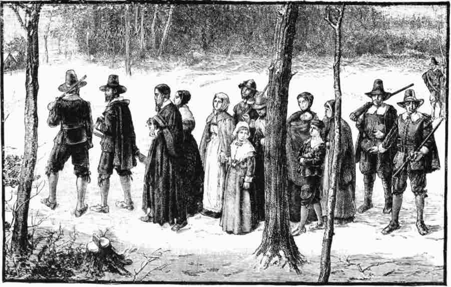 There were some in Eng-land who had a great wish to see this new world. They thought they would like to live in a land with no King, and have a church where they could pray to God in their own way. They were called "Pil-grims," for they went from place to place and would sing psalms and pray, and they were full of joy at the thought of their new home.