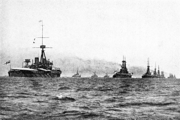 Few people realised at the time the immense significance of the memorable eastward movement of the squadrons from Portland Roads, or of the assembly of those powerful forces at their northern strategic anchorages. Those forces became the Grand Fleet, that unexampled organisation of fighting force, under command of that fine sea officer, Admiral Sir John Jellicoe. War was declared by Great Britain on August 4th. Successive steps of supreme importance were taken, which, in very truth, saved the cause of the Allies. Disaster and surprise attack were forestalled. The Fleet, fully mobilised, and growing daily in strength, was already exerting command of the sea, and the safe transport of the Expeditionary Force to France was assured. Co-operation with the French Fleet was immediately established—its cruiser squadron in the Channel and its battle squadrons in the Mediterranean.