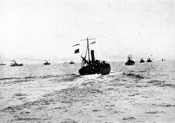 The nobility of the work carried on by the officers and men of the merchant service and the fishermen, whether in armed ships, mine-trawlers, or cargo vessels, is a dominant note of the war. Their heroism has been conspicuous, and, as was stated by Admiral Sir Henry Jackson, when he was First Sea Lord of the Admiralty, the facility with which they learned to carry out their duties as part of a trained fighting force was extraordinary. “The Allied nations,” he said, “owe them a deep debt of gratitude for their response, as well as for their indomitable pluck and endurance.” “There is no room in the Navy for anything but the most sincere admiration and respect for the officers and men of the mercantile marine,” said Sir John Jellicoe. They had practically become a part of the fighting force, sharing in the work of the Navy in the war, and their courageous conduct and unflinching devotion to duty have gained the testimony of naval officers everywhere, not only in the British service, but in the Allied navies which have come into contact with them. Of the magnificent service of the mine-trawlers we have spoken in a previous chapter.
