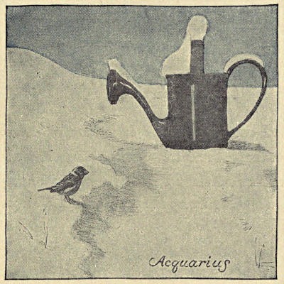Generally frigid airs, varied by storms and melting spells, with changing temperature until the Fourteenth, when a soft wave will sweep over the country accompanied by sentimental Mail Storms, resulting in a general rise of temperament and a happier atmosphere. Husbandmen who are cultivating matrimony will be much troubled through this month by the squally nights.