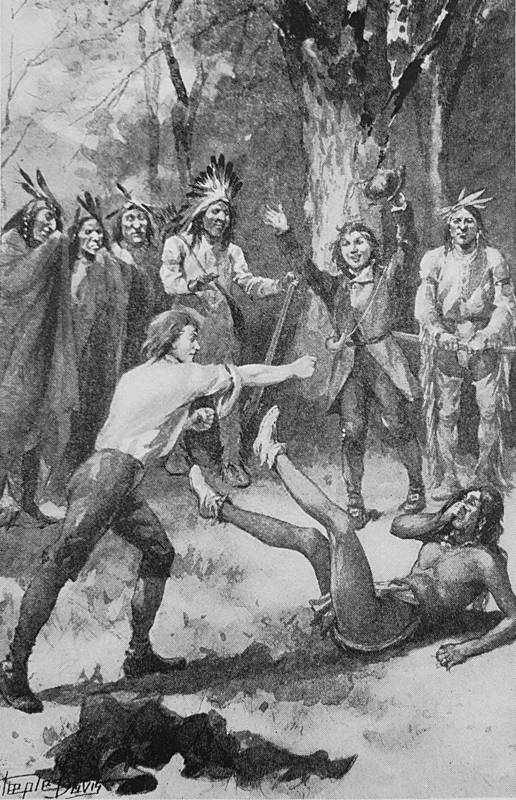 Deerfoot was dressed as he has been before described, but he carried a long, heavy blanket that was strapped to the back of his horse and served in lieu of a saddle. The powder horn and bullet pouch suspended from his neck were as full as they could carry. He looked so graceful on his animal that many expressions of admiration were heard from the people of Woodvale who had gathered to see the start. Deerfoot did not seem to hear any of the compliments, though some were addressed directly to him. He was never pleased with anything of that nature.