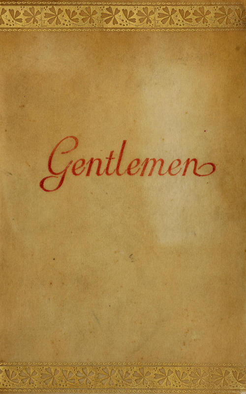 | Dress for Weddings—Funerals—Christenings—at Home or Church—New Year’s Calls—Mourning—Church Wear—Suspenders—Uppers—Attire Made to Order—Blondes and Brunettes—Jewelry—Dressing Case—Articles for Same—Rubbers—English Rain Attire—Cloth Bands on Top-Hats—Wigs—Opera Glass—Decorations—Fans—Trousers Crease—Pockets—Monocle—Dress Shields—English Hunt Attire—Hunt Ball—Closing Remarks. |