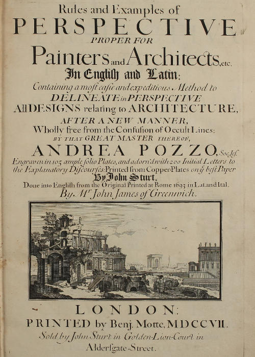 The Condescension of the late Emperor of Germany to patronize this Work in the Original, could not have incited me to the Presumption of laying the Translation at Your Royal Feet; had not the Art of Perspective, of which it treats, been so nearly ally’d to the Noble Arts of Painting and Architecture. The First of these Your Majesty has been pleas’d to honour, as well in expressing a Satisfaction with the Performances, as in extending Your Royal Munificence to that great Master thereof, Signor Verrio.