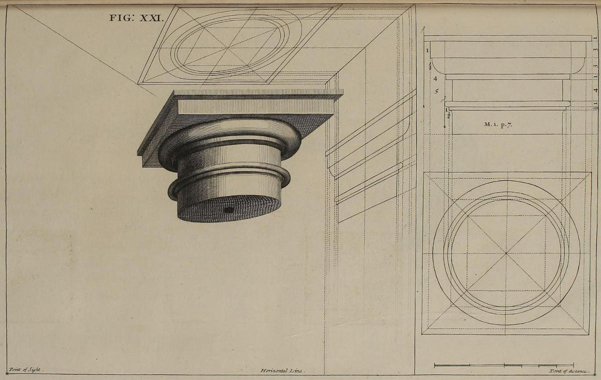 | Optica projectio capitelli Dorici, | XXII. | The Projection of a Dorick Capital in Perspective. |