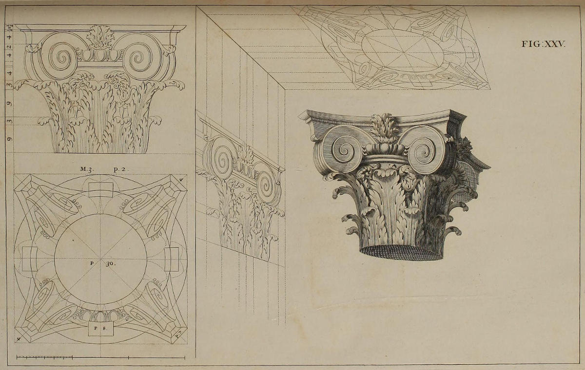 | Optica descriptio capitelli Compositi, | XXV. | The Composite Capital in Perspective. |