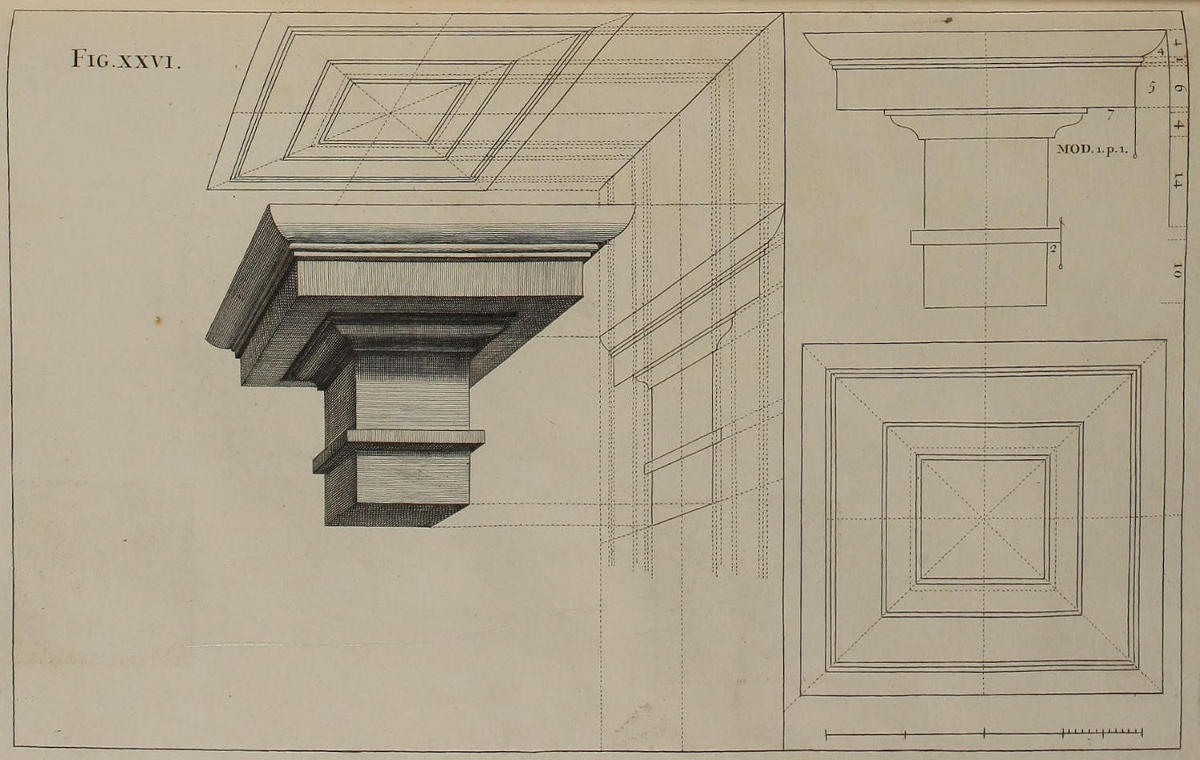 | Deformatio coronicis Etruscæ, | XXVI. | The Tuscan Entablature in Perspective. |