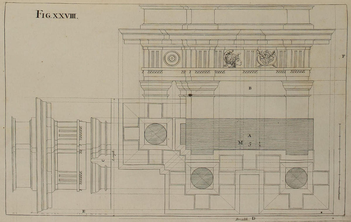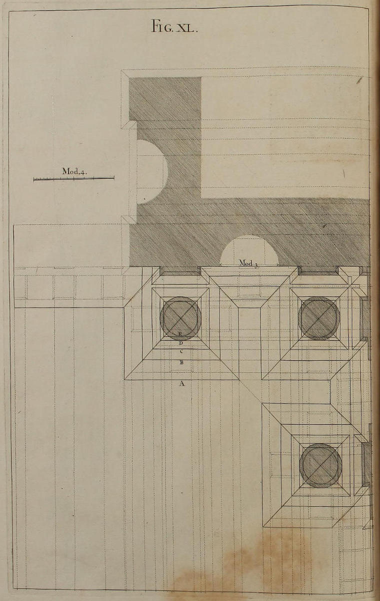 | Vestigium geometricum ædificii Ordinis Dorici, | XL. | The Geometrical Plan of a Design of the Dorick Order. |