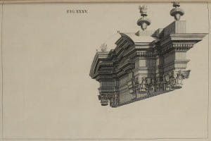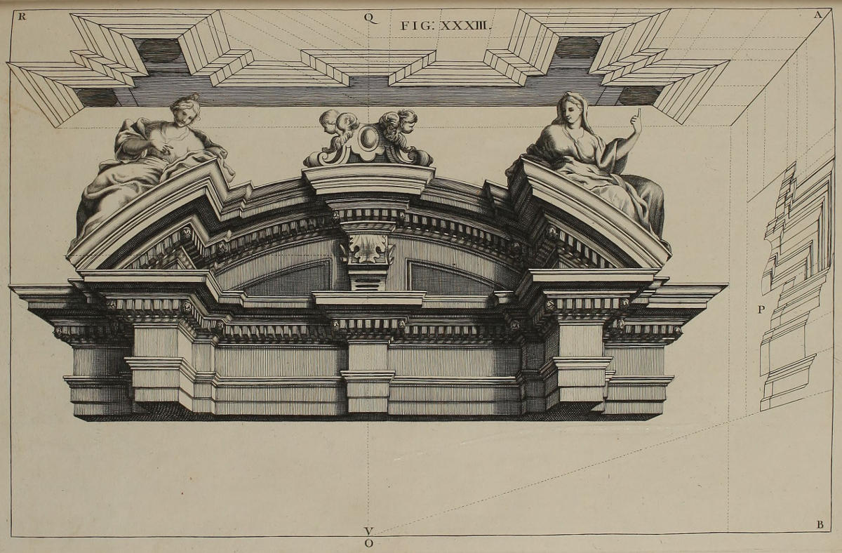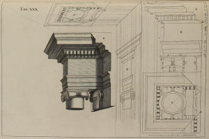 | Optica projectio ædificii Ionici; ubi de modo jungendi fictum cum vero, | XXX. | An Ionick Work in Perspective, with the Manner of reconciling the fictitious to the solid Architecture. |
