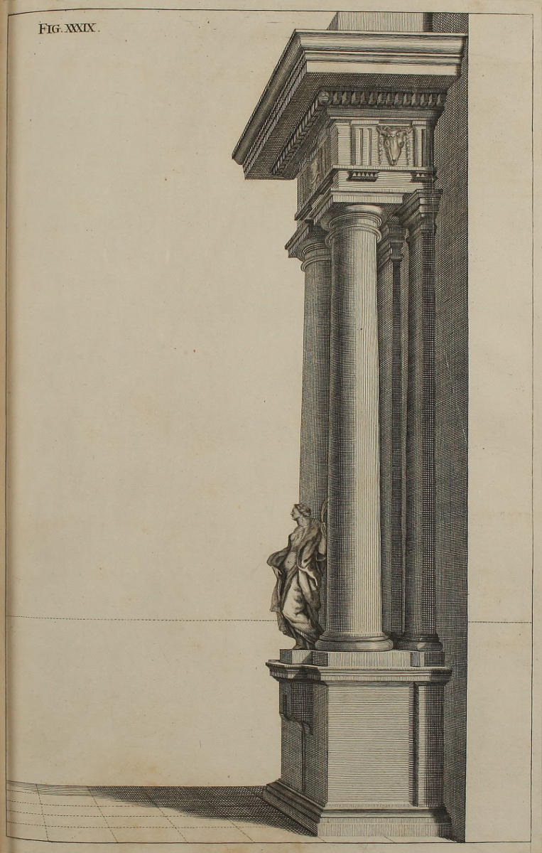 | Optica projectio ædificii Dorici, | XXIX. | A Projection of the Dorick Order in Perspective. |