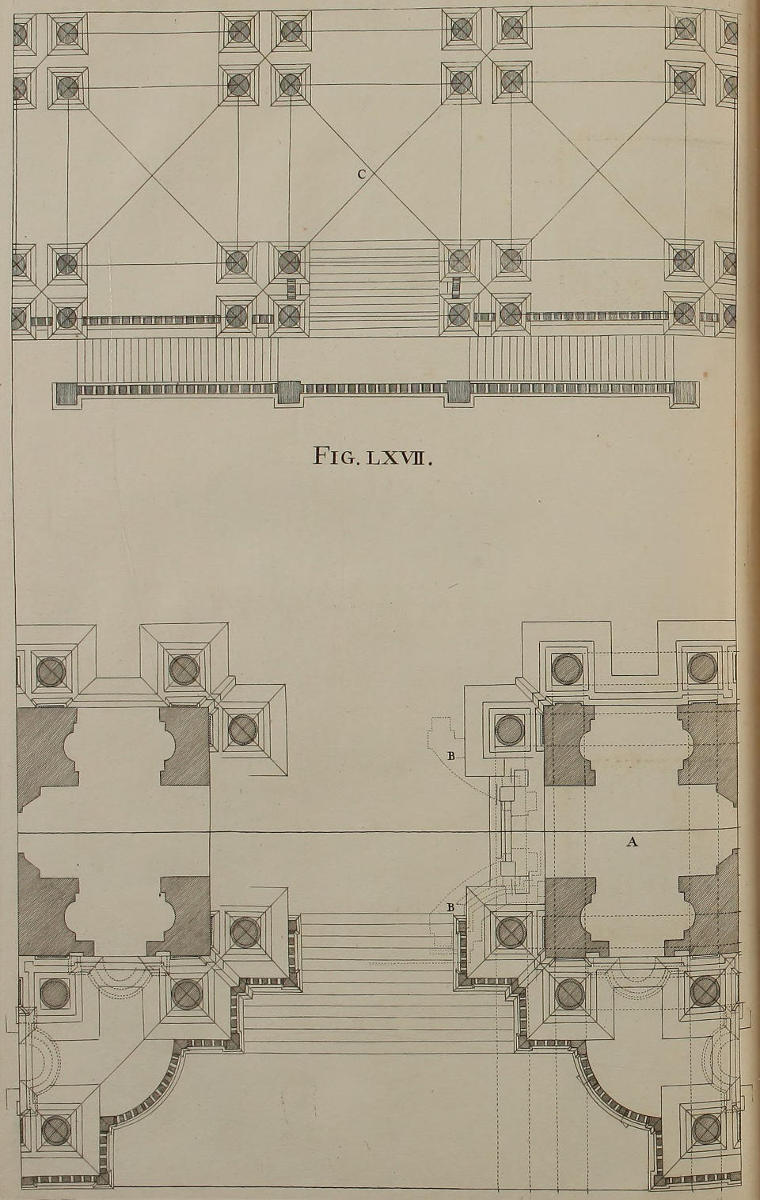 | Elevatio geometrica vestigii præcedentis, & secunda præparatio ad figuram septuagesimamprimam, | LXVIII. | The Geometrical Elevation of the foregoing Plan, and second Preparation to the Seventy-first Figure. |