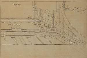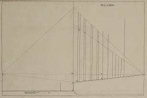 IV. That you would accustom yourself in Works that have many Lines, to make the Perspective-Plans and Uprights for each Part distinct, so as to prevent all Danger of Confusion. Thus you may have one Plan and Upright for the Basement of a Building; and when that is drawn on your finish’d Piece, remove them, and place those of the Body of the House; and when that’s complete, do so by the Attick, &c. always observing so to place the Plan below, and the Upright on one side of your neat Draught, that your Drawing-Square may command each of them; which will mightily shorten your Work.