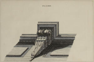 | Projectiones vestigii & elevationis mutuli, | LXXIX. | The Plan and Elevation of a Corbel in Perspective. |