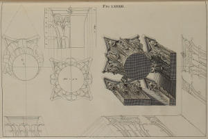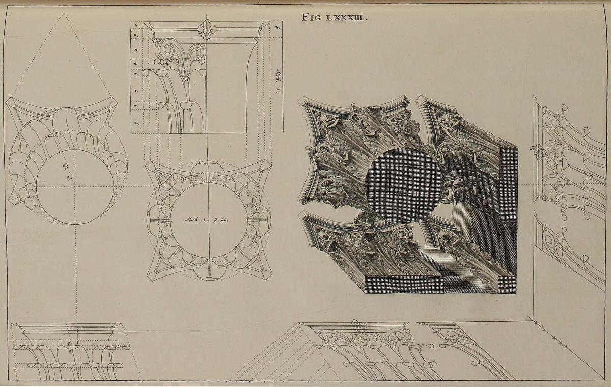 | Capitella Corinthia horizontaliter contracta, | LXXXIII. | A Corinthian Capital in horizontal Perspective. |