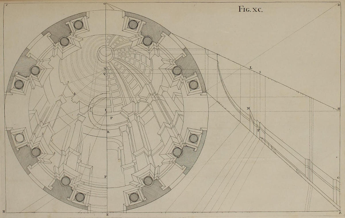 | Horizontalis projectio tholi, | XC. | A Cupola in horizontal Perspective. |