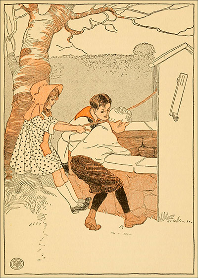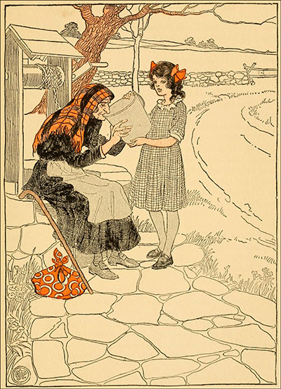 For kind permission to use copyrighted and other material, the author is indebted to the following: Milton Bradley Company, for “The Closing Door”, from Mother Stories, by Maud Lindsay; Little, Brown & Company, for “Tom Goes Down the Well”, from Mice at Play, by Neil Forest; Presbyterian Board of Publication, for “Gloomy Gus and the Christmas Cat”, by Alfred Westfall, and “Ann Catches a Thief”, by Daisy Gilbert; McLoughlin Brothers, for “Patty and Her Pitcher”; The Beacon Press, for “The Brahmin, the Tiger, and the Jackal”, from First Book of Religion; Cassel & Company, for “Music Bewitched”, by Hartley Richards; American Baptist Publication Society, for “John and Margaret Paton Among Savages”, by Grace E. Craig; Bobbs-Merrill Company, for “Your Flag and My Flag”, from The Trail to Boyland, by Wilbur D. Nesbit, copyright 1904. Acknowledgment is also due to Cassell, Petter, Galpin & Company, for “The Bubble Story”, “Mischievous Anna and Peter”, and “The Cat and the Carrots”.