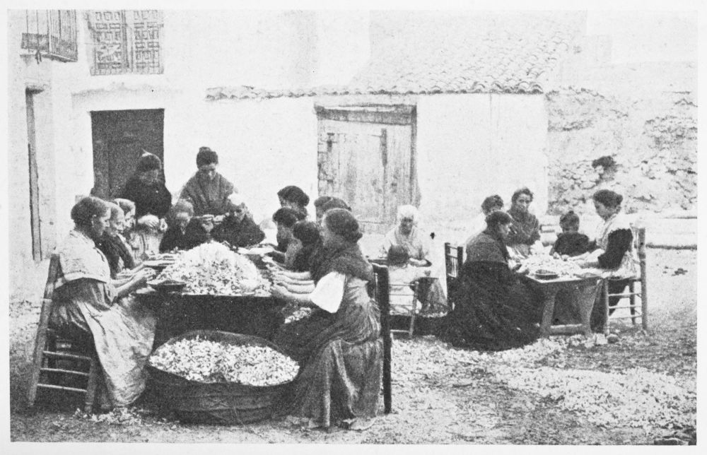 Burial often takes place without the offices of the Church, for there are few among the working classes who can afford to pay for a funeral Mass, and very many are unaware that they can insist upon the attendance of a priest even without a fee. And since the charge for a marriage in church amounts in many parishes to as much as 25 pesetas—the average weekly wage of the agricultural labourer certainly not exceeding half that sum—it is only to be expected that the civil ceremony, which costs one peseta, or the stolen “blessing” snatched from an unwilling priest by the pair proclaiming themselves man and wife at the close of any Mass, should be more frequently resorted to than the orthodox function. Many couples, moreover, live all their lives as husband and wife, as faithfully as if married by the Church or the mayor, without any religious or legal tie at all.