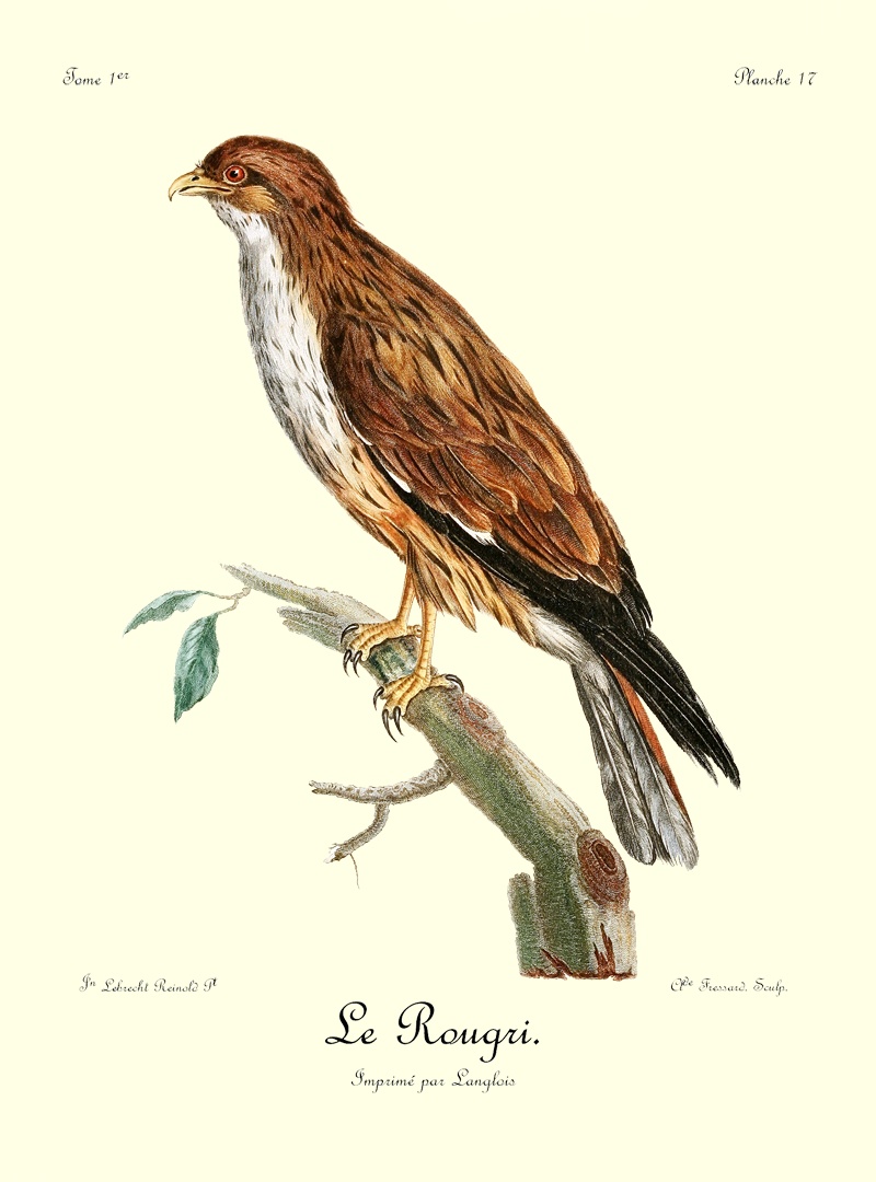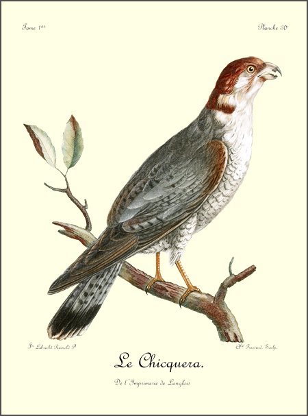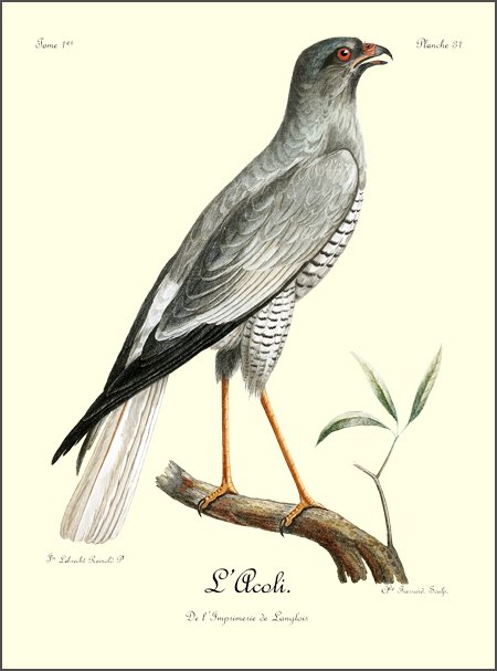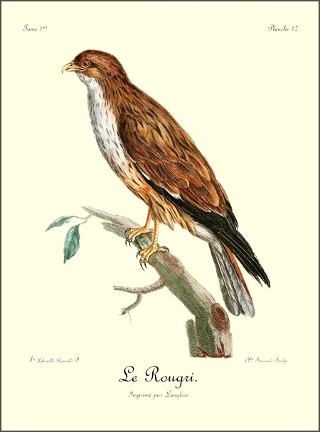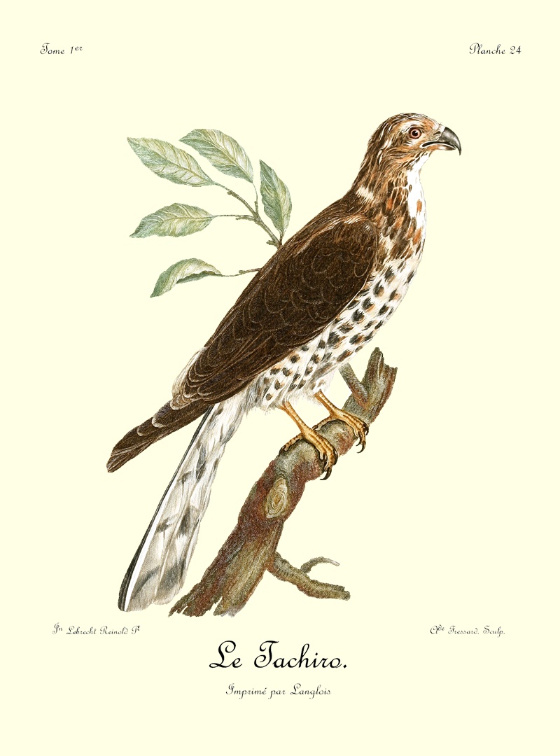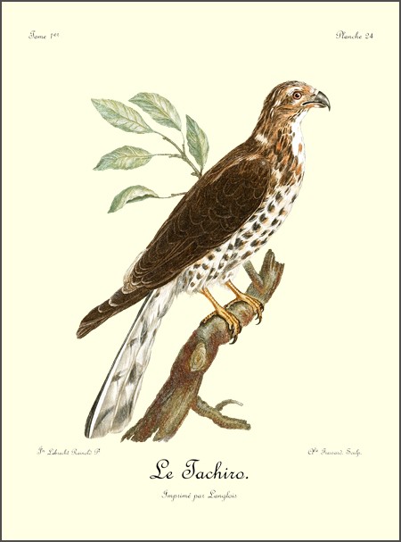 Si l’intrépidité et le courage sont les caractères moraux qui distinguent les aigles des autres oiseaux de proie, sans contredit celui dont il est question ici est autant un aigle que celui dont nous avons parlé sous le nom de griffard; car il est le tyran de tous les grands oiseaux qui habitent ses états; c’est un vrai despote, qui, abusant de ses moyens, fait la guerre à tout ce qui l’environne, et immole tout ce qui l’approche. Destiné à faire la chasse au peuple aîlé, la nature l’a doué d’une grande aisance dans son vol; une très-longue queue lui sert admirablement bien pour se diriger avec agilité, et parer aux reviremens fréquens et prompts qu’emploient les oiseaux qui cherchent à éviter ses cruelles serres; écarts brusques, qui, presque toujours, les font échapper à tout autre oiseau de rapine, mais qui deviennent inutiles avec celui dont nous parlons.