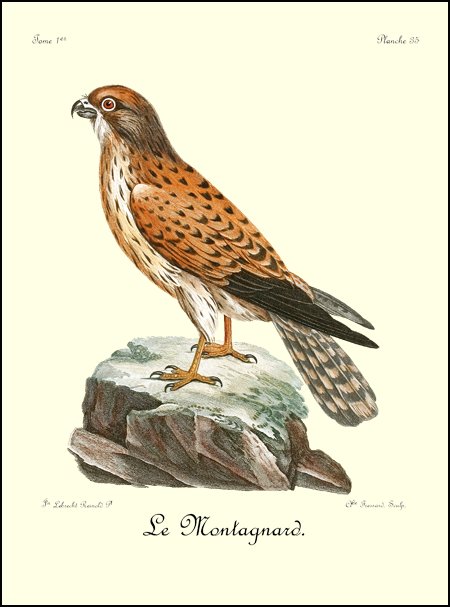 Les diverses espèces de petites gazelles et les lièvres sont sa proie ordinaire: il fond sur les premières, les tue facilement et d’une manière qui démontre la force dont la nature l’a doué. Mais c’est sur-tout dans sa haine pour les autres grands oiseaux de rapine, qu’il fait admirer son courage: il les poursuit dès qu’il les apperçoit; font-ils résistance, il les combat impitoyablement, les oblige à fuir, et n’en souffre aucun dans le canton qu’il a choisi pour son domaine et sa chasse.