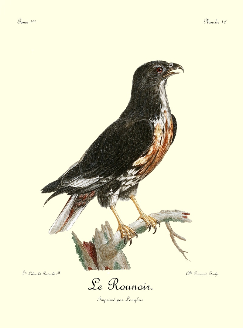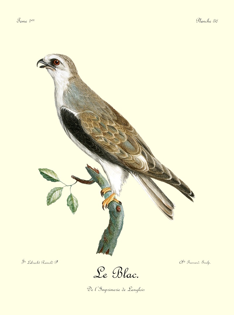 J’ai eu long-tems le plaisir d’observer un couple de Blanchards, mâle et femelle, qui étoit établi près de mon camp dans les bois du charmant et délicieux pays d’Auteniquoi. Je les ai examinés pendant plus de trois semaines avant de les tuer. Assis au pied d’un arbre, je passois des matinées entières à observer tous leurs mouvemens et toutes leurs ruses. Comme, dans ce tems, ils étoient occupés à couver, et que jamais le nid n’étoit vaquant, je me voyois sûr de les retrouver chaque jour dans les mêmes lieux. Quand l’un d’eux s’étoit saisi d’une proie quelconque, tous les corbeaux des environs accouroient par troupes innombrables, criant autour de lui, et cherchant à avoir leur part du butin; mais l’aigle paroissoit mépriser ces oiseaux piaillards, qui, n’osant approcher de trop près, se contentoient de se jeter sur les débris qui tomboient de l’arbre où le Blanchard dévoroit paisiblement sa proie. Quand il se présentoit dans l’arrondissement un oiseau de rapine quelconque, le Blanchard mâle le poursuivoit à toute outrance jusqu’à ce qu’il fut hors de son domaine. Les plus petits oiseaux pouvoient tous impunément s’approcher jusque sur le nid même de cet aigle, qui ne leur faisoit aucun mal; ils étoient même là en sûreté contre les attaques des oiseaux de proie d’un ordre inférieur.