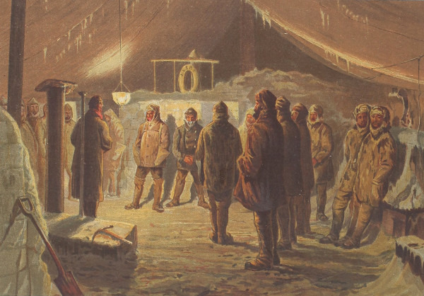 | End of Twilight—Moonlight—Daily Life in Winter Quarters—Condensation—Breakfast—Morning Prayers—Outdoor Work—Exercise—The Ladies’ Mile—A Walk to Flagstaff Point—Sounds from the Pack—Optical Phenomenon—Dinner—Our Cat “Pops”—Occupation during Winter—Mock Moons—“Sally”—The Darkness, | 40 | |