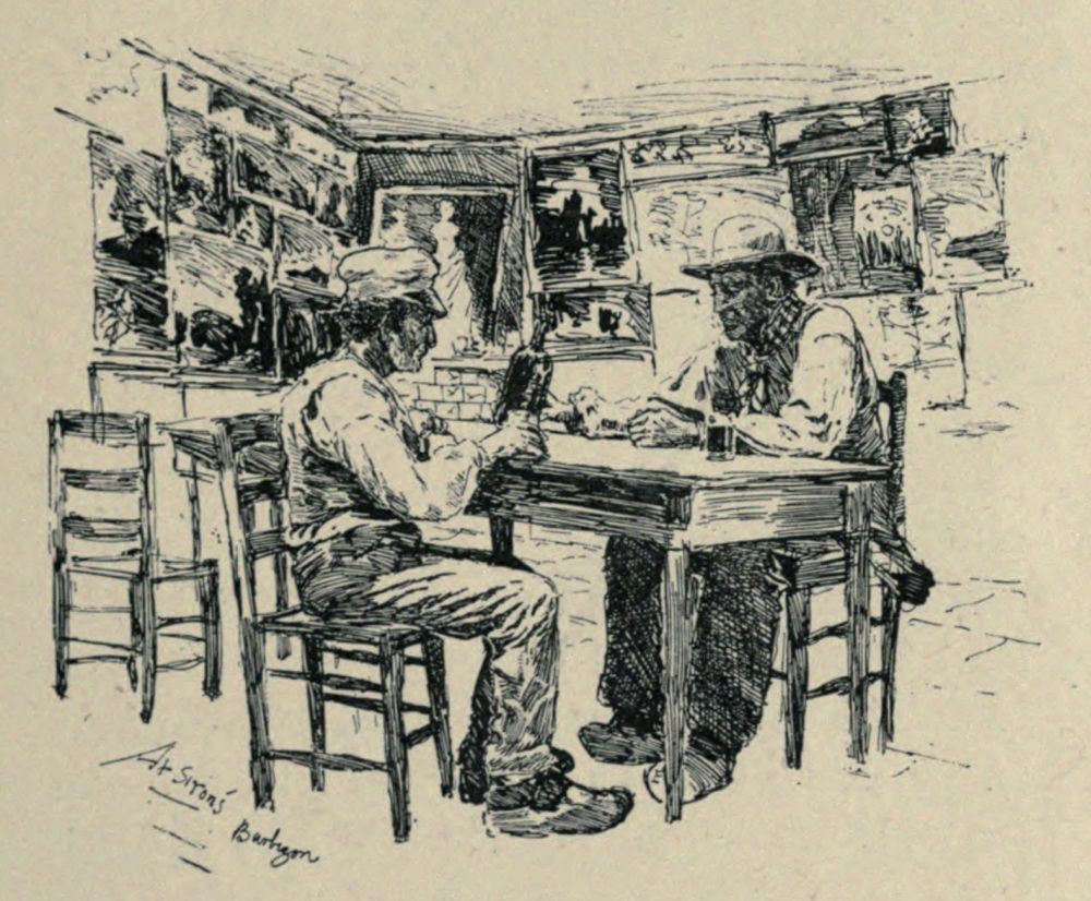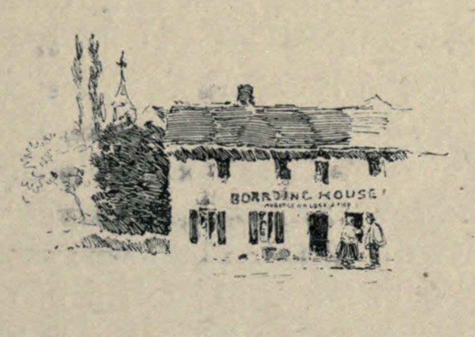 We left the champions of the regatta toasting each other at the next table, and went into the[27] salon to study a chapter of our sentimental guide-book in preparation for the first day’s ride. But an American was there before us, and began, instead, a talk about Wall Street and business, Blaine and torchlight processions. As Americans do not travel to see Americans, we retired to our room.