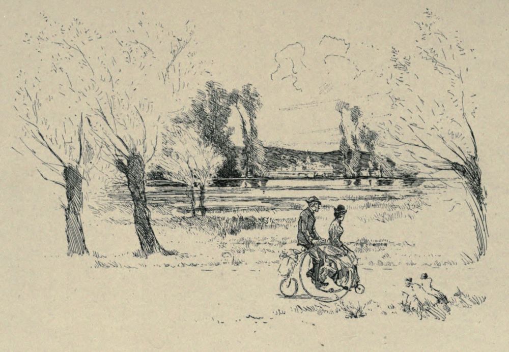 The other incidents of that long afternoon I remember merely because of their association with[35] hills. It was at the top of one, where I arrived breathless, we had our first view of the dome and monument of Boulogne; it was at the bottom of another that we came to the pavé of Wimille; it was half-way on a third, up which J—— worked slowly, standing up on the pedals and leaning far over to grasp the front handle bars, while I walked, that I was stopped by an Englishman and Englishwoman.——