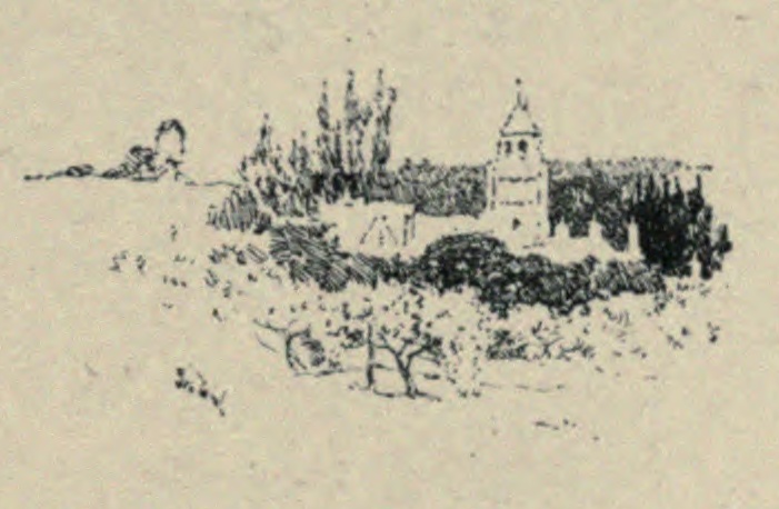 And as, in our modesty, we would indeed be unwilling to trouble you a second time, we must take advantage of this unhoped-for opportunity to add a few words of explanation about our journey[x] in your honour. It is because of the conscientious fidelity with which we rode over the route made ever famous by you, that we have included ourselves in the class of Sentimental Travellers, of which you must ever be the incomparable head. To other sentiment, dear Sir, whatever we may have thought in the enthusiasm of setting out, we now know we can lay no claim. Experience has taught us that it depends upon the man himself, and not upon his circumstances or surroundings. Nowadays the manner of travelling through France and Italy is by rail, and mostly on Cook’s tickets, and chaises have become a luxury which we at least cannot afford. The only vehicle by which we could follow your wheel-tracks along the old post roads was our tricycle, an ingenious machine of modern invention, endeared to us, because without it Our Sentimental Journey would have been an impossibility. In these degenerate days, you, Sir, we are sure, would prefer it to a railway carriage, as little suited to your purposes as to those of Mr. Ruskin—an author whose rare and racy sayings you would no doubt admire were you still interested in earthly literature. Besides, in a tandem, with its two seats, there would be nothing to stir up a disagreeable sensation within you. You would still have a place for “the lady.[xi]”